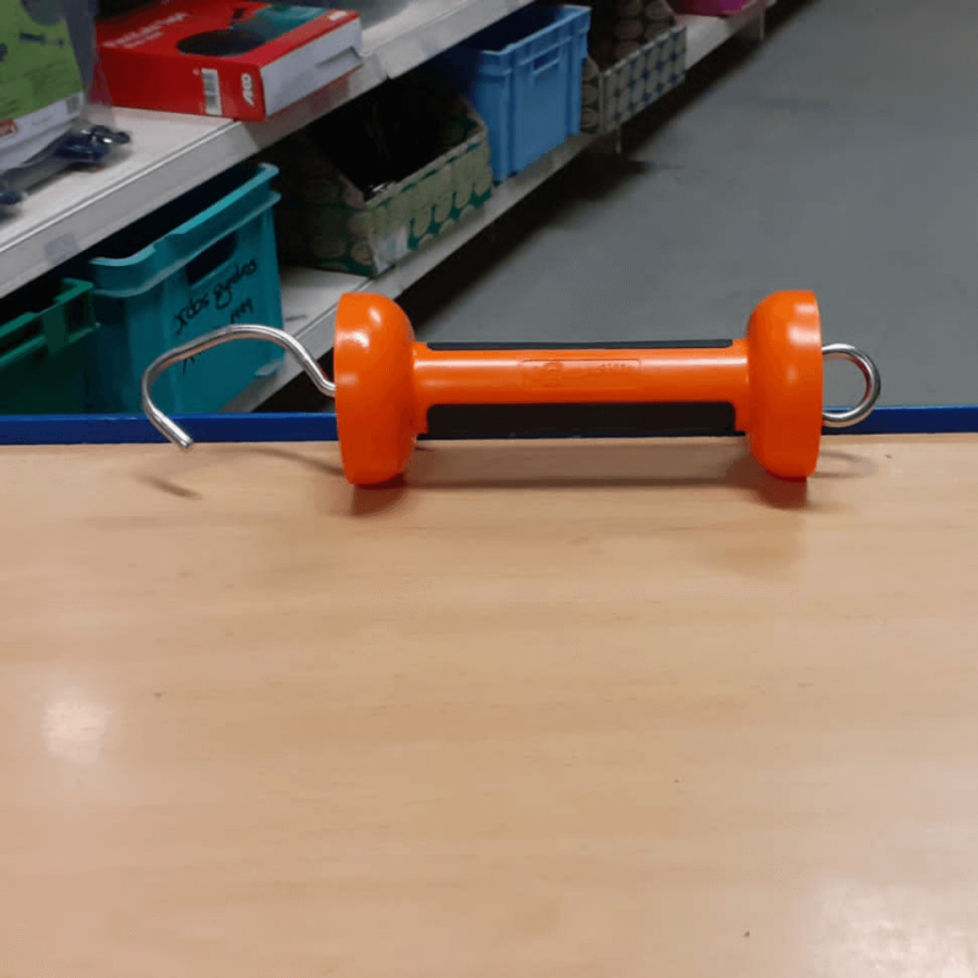 Poignée bi-matière orange à compression. Avec un large rebord pour une bonne isolation et prise en main.